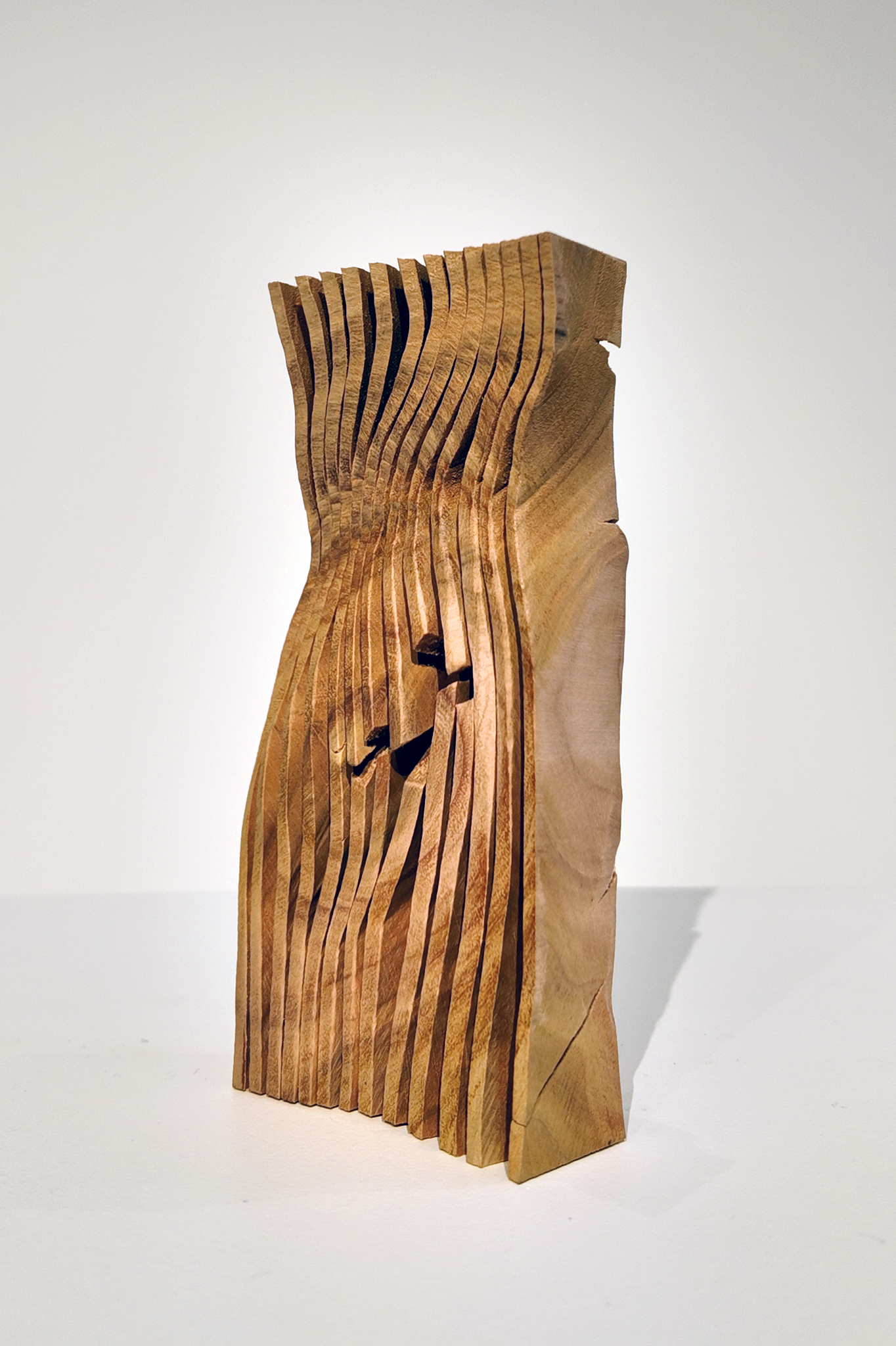 Artiste: Yves Tilly Type de sculpture : Sculpture en bois (Eucalyptus) Dimensions : H 14,2 x L 6,7 x P 2,5 cm